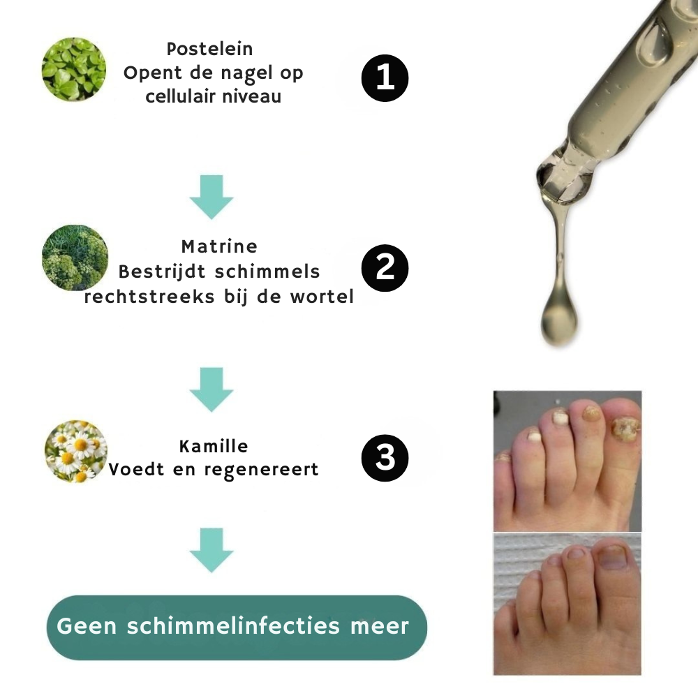 Zeg vaarwel tegen pijnlijke, ontsierende nagelschimmel met het krachtige Mooibelle Anti-Schimmel Serum. Deze 100% natuurlijke formule werkt diep in de nagel en huidlagen om schimmelinfecties snel en veilig te verwijderen. Geen bijwerkingen, geen gedoe—alleen gezonde, sterke nagels in slechts 14 dagen.